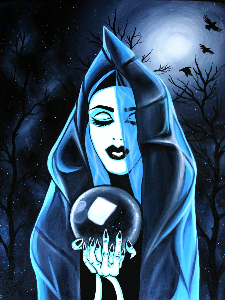 This magical Oracle holds her crystal ball trying to see into the future. Printed on C1S Tango Paper, size is 12x16 inches.
